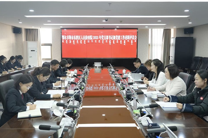 为进一步压实党建工作责任,提升党组织的凝聚力战斗力,推动基层党建工作提质增效,1月21日,东胜区人民检察院召开2025年党支部书记抓党建述职评议会。会议由院党组书记、检察长任婵主持,东胜区委组织部公务员室第一负责人高凡越到会指导,院领导班子成员、人大代表、政协委员、各党支部书记、支部委员、党员代表和群众代表参加会议。