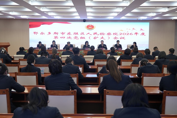 新春伊始,万象更新。为迅速凝聚思想共识,校准工作航向,2月24日,春节假期后首个工作日,东胜区人民检察院召开党组扩大会议,集中传达学习各级纪委全会、内蒙古自治区两会、全区检察长会议、鄂尔多斯市政法工作会议等近期重要会议精神。会议旨在引导全体检察人员迅速从“节日模式”切换到“工作模式”,以“起步即冲刺、开局即争先”的奋斗姿态,为新一年检察工作高质量发展谋篇布局、凝心聚力。党组书记、检察长任婵主持会议并讲话,全体检察人员参加会议。